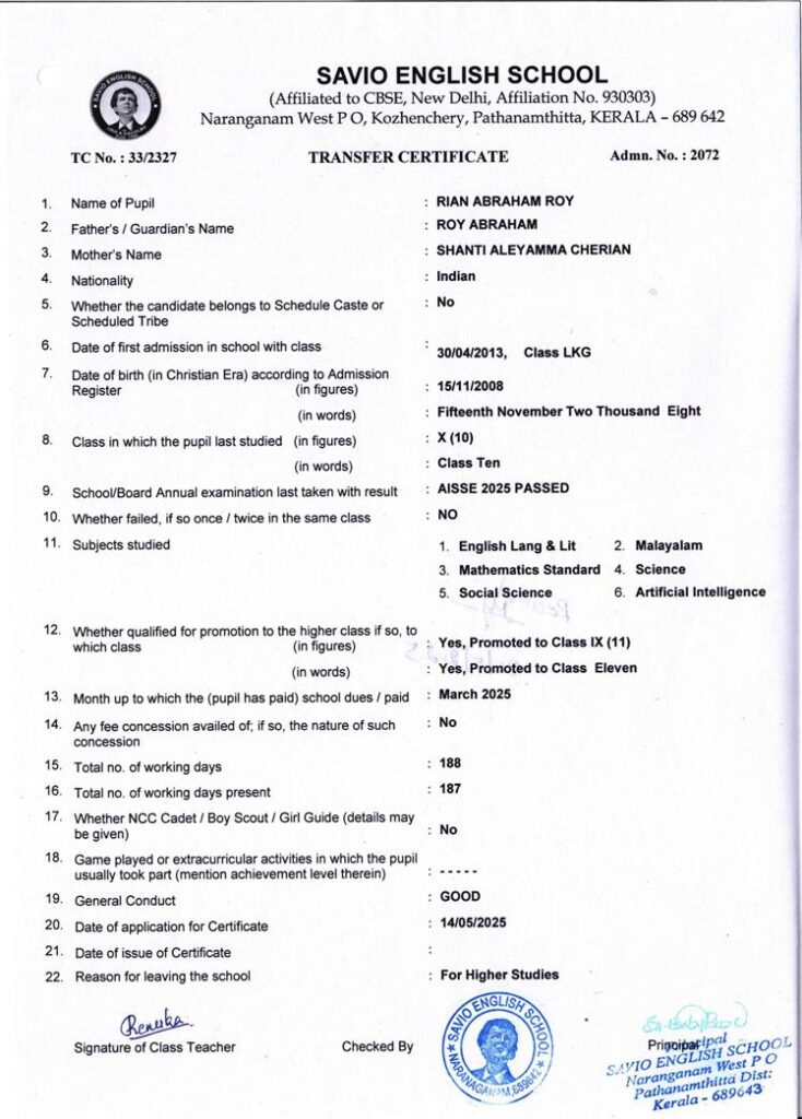 ADMISSION & TC